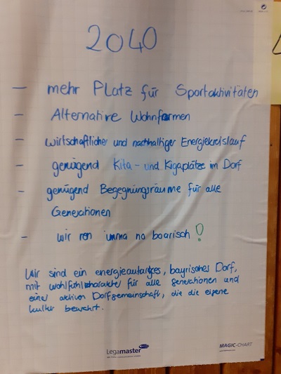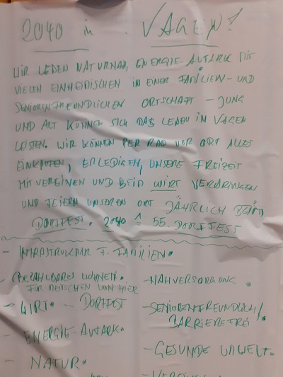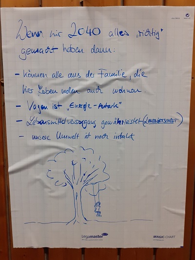 Die Anwesenden wurden in Gruppen aufgeteilt und haben folgende Zukunftsbilder erarbeitet: