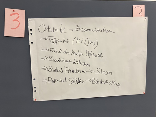 Nun folgte der direkte Einstieg in den Workshop an den Stellwänden. Folgende Fragen/Themen durften von den Bürger*innen bearbeitet werden.